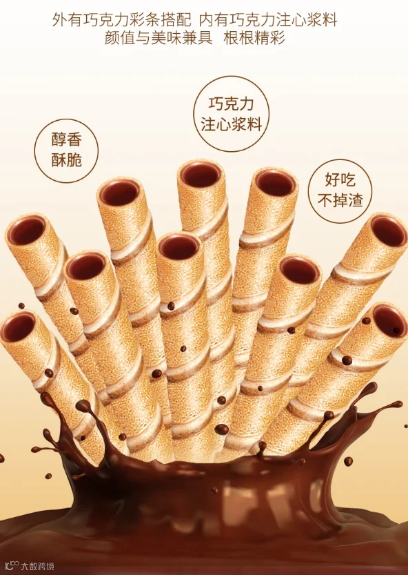 威化蛋卷饼干!一口酥香,满口甜蜜,享受零食的乐趣,体验巧克力的优雅~