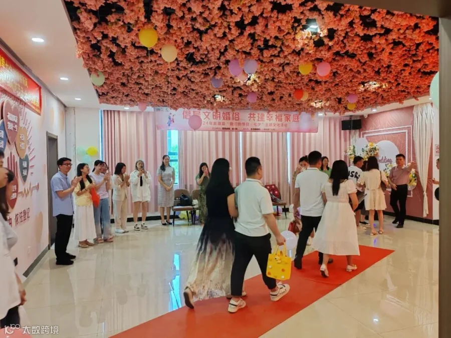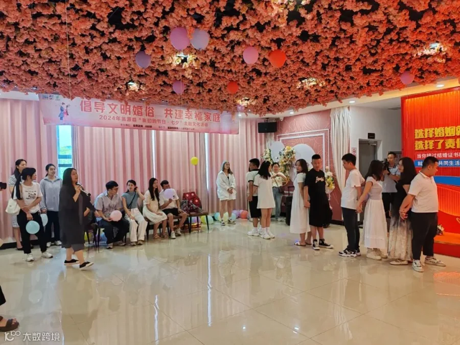 在这个银河倾泻、鹊桥相会的传统佳节——七夕节,翁源县行政服务中心婚姻登记室被浪漫与温情紧紧包围,一场别开生面的“移风易俗创新风”结婚登记集体颁证仪式在这里甜蜜上演,10对新人携手步入婚姻的殿堂,共同开启人生的新篇章。