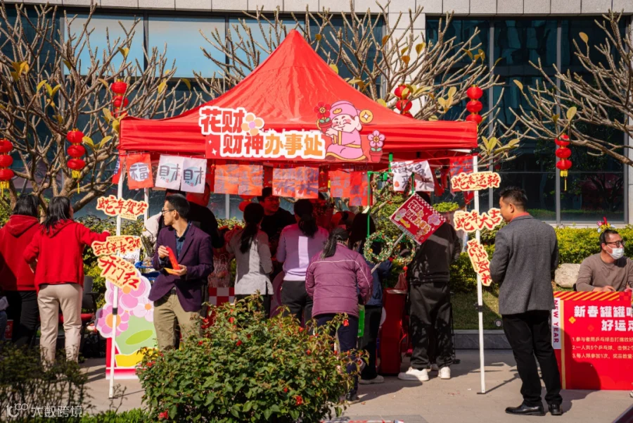 职工摊位由各部门团队在半个月的时间内自行完成策划、设计、采购、包装、运营。大家的奇思妙想层出不穷,销售的商品花样繁多,摊位名称也各具特色——漆待美好、人人有品family、丸美甜品店、花神、财神办事处、有茗堂、好运来、冰糖的幸福、魔法新年剪梦艺坊。在这场传统与现代交融的游园会中,三孚新科的职工们以无限的创意与热情,共同创造一场欢乐盛会。