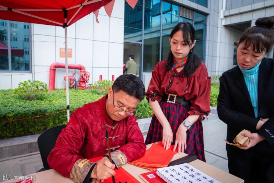 组委会特别设置的文化摊位在本次游园会上尤为吸睛,众多书法爱好者齐聚一堂,现场邓大师和苏大师挥毫泼墨,为职工们送上了一幅幅寓意吉祥的对联,一张张形式多样的福字,美好与祝福在现场传递。