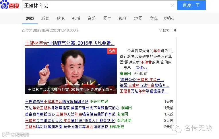 图1:百度搜索“王健林 年会”展示结果