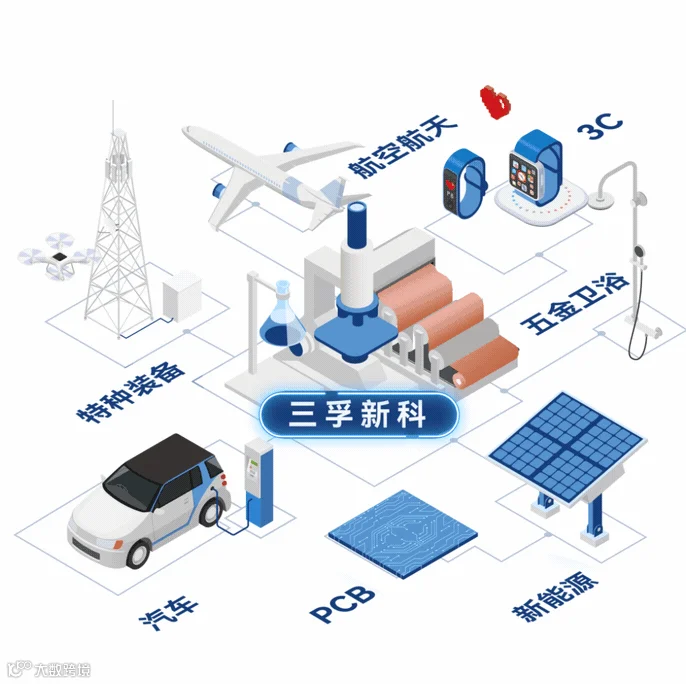 广州三孚新材料科技股份有限公司(股票代码:688359)是一家表面工程技术解决方案提供商,主要从事表面工程技术的研究以及新型环保表面工程专用化学品、专用设备的研发、生产和销售。具有行业一流的研发能力和产品定制能力,产品广泛应用于PCB制造、3C产品制造、汽车零部件、五金卫浴、新能源等众多工业领域。