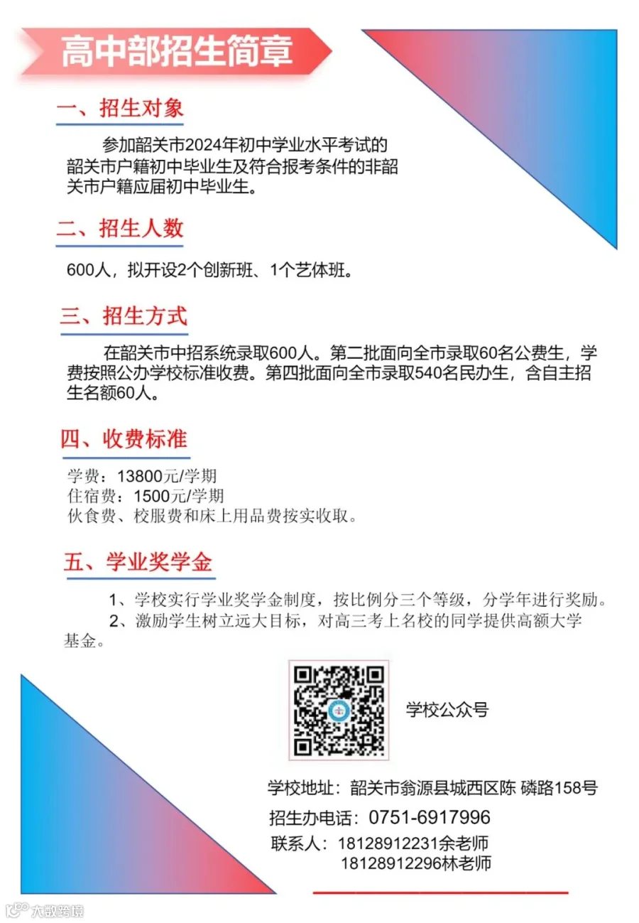 永翔实验中学丨高中部2024年招生简章发布,点击查看→