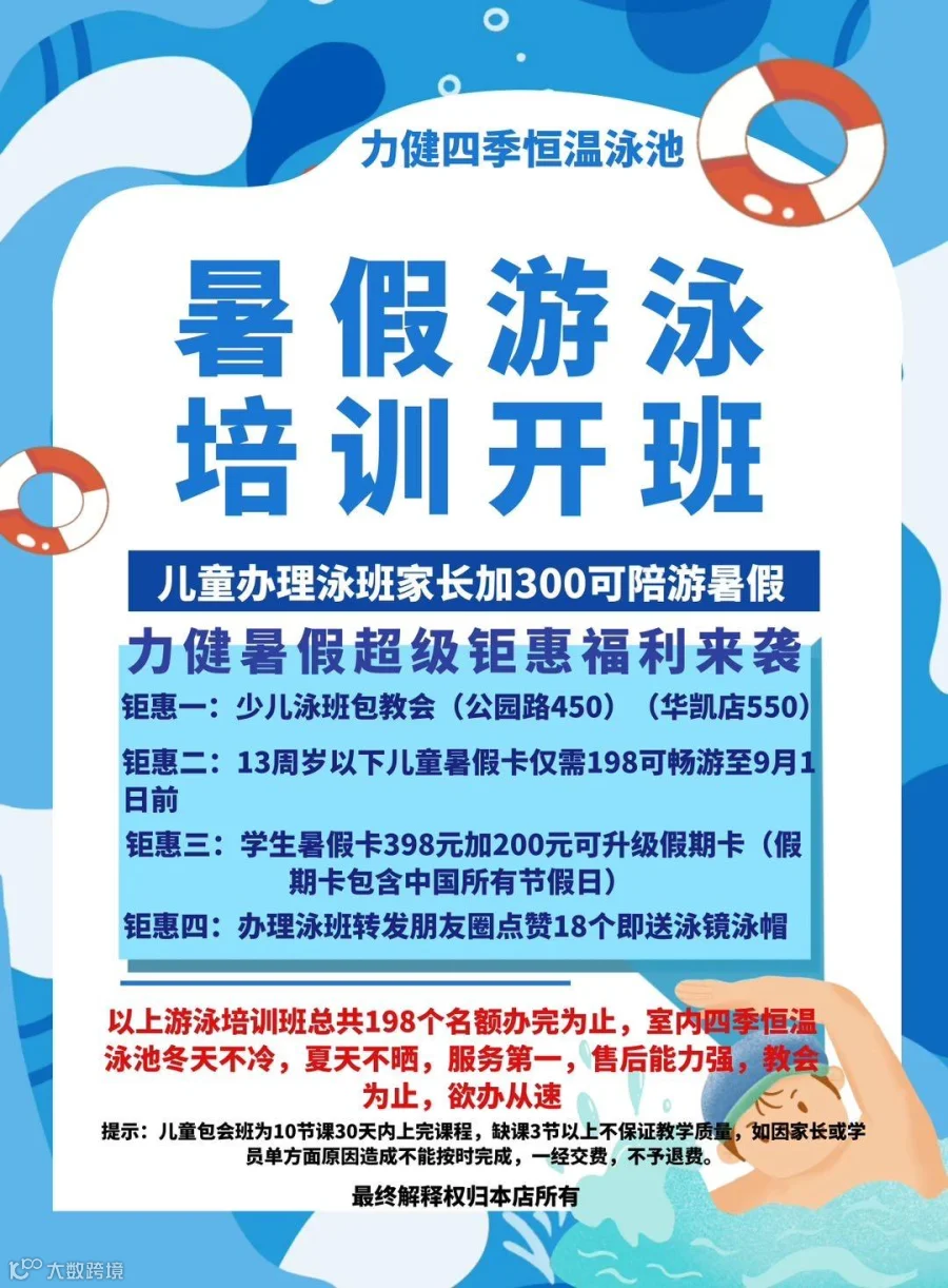 专业儿童游泳教学,恒温泳池,包教包会,常年开班,已毕业学员1500+,暑假班排课中,报名找阿豪,抢优惠价,咨询热线:177-2581-6716(微信同号)。