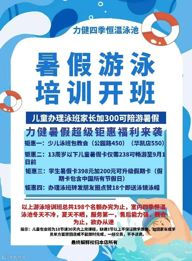 力健恒温泳池丨暑期游泳培训
