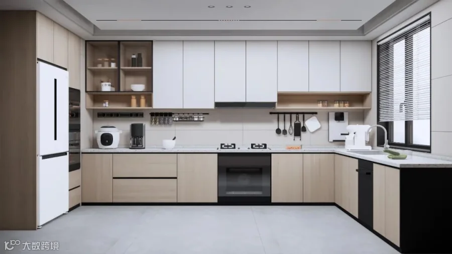 约3m阔尺的L型厨房,让油烟无法侵入生活区,贴心设计,洗切炒合理的空间划分,让美味一步即达。