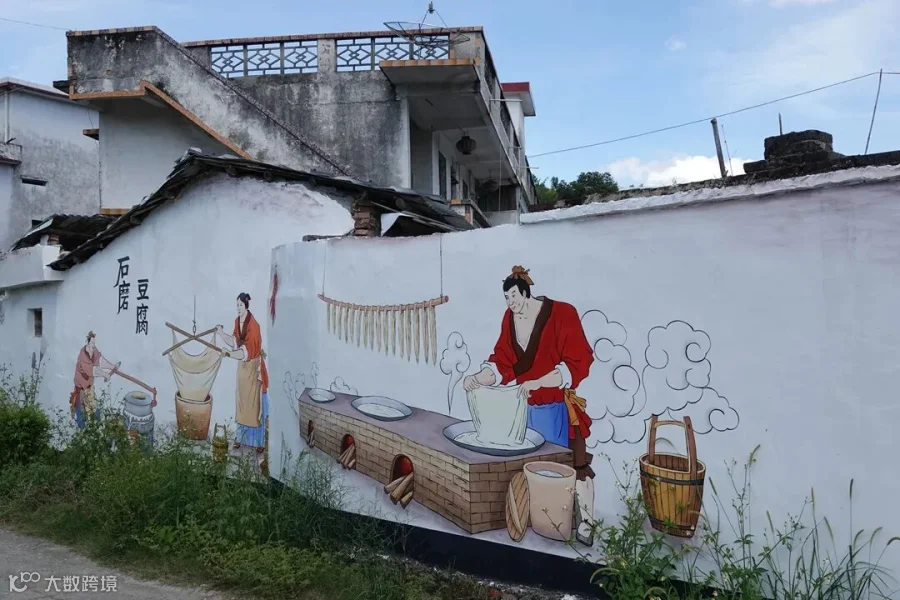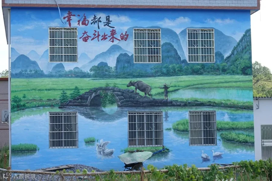 另一方面,为了建设美丽乡村,许多房子的外墙都画上了漂亮的壁画。一起来欣赏一下吧!