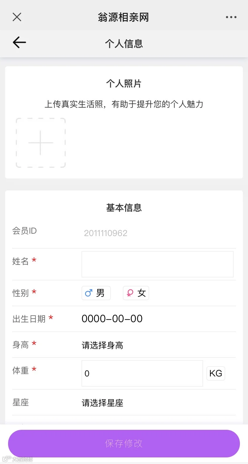 3、进入翁源相亲网后,在“我的”填写相关资料。