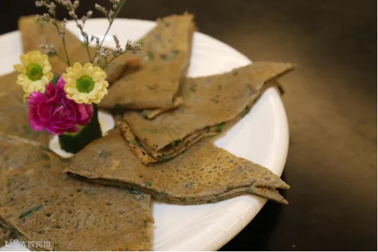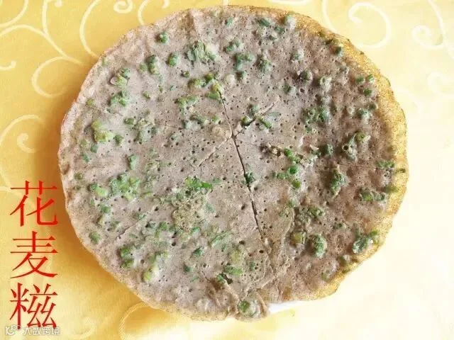 花麦学名荞麦,含有丰富的维生素E和可溶性膳食纤维,有降低人体血脂和胆固醇、软化血管、保护视力和预防脑血管出血的作用。花麦糍制作方法:把花麦磨成粉,再用水拌成浆加上葱花放在锅煮熟即可。2021年,周陂花麦糍制作技艺被列入韶关市第八批市级非物质文化遗产代名录。