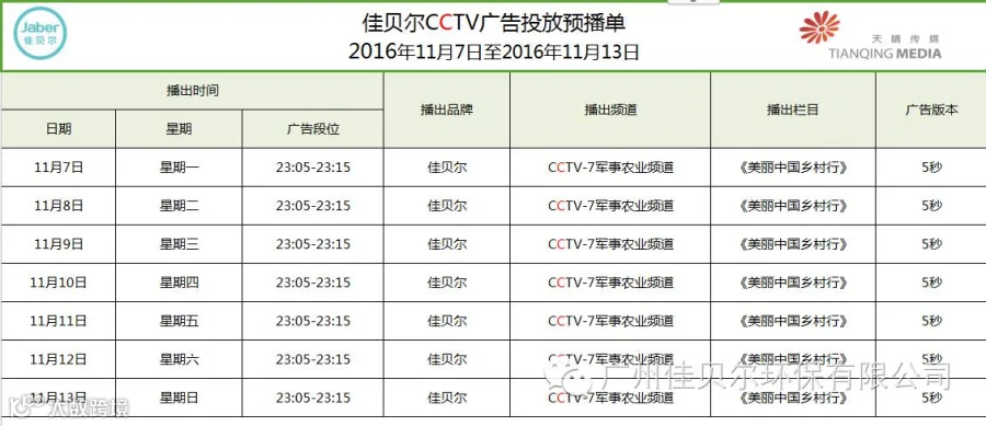 净水器行业在国内的发展已有时日,然而具备品牌建设实力的厂家却不多,能在央视投放广告的更是屈指可数;净水器十大品牌佳贝尔净水器将于11月7日开始,在央视CCTV7、CCTV2、CCTV3投放为期一年的广告,届时将公布详细的播放时间表: