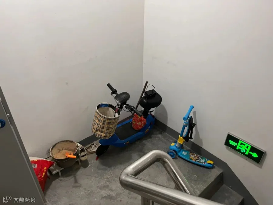 火灾隐患情况:疏散楼梯处违规停放电动自行车