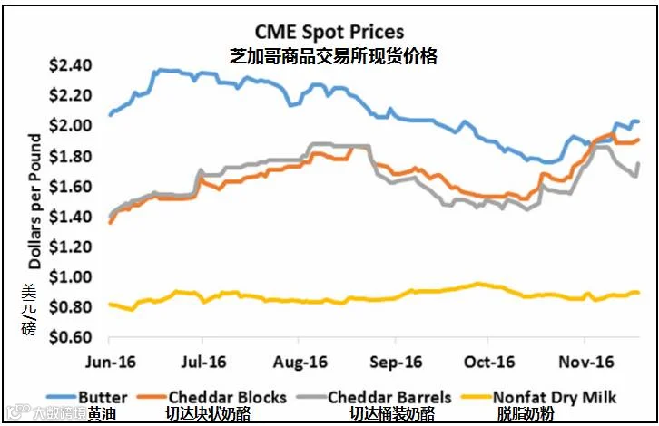 加州4a牛奶$13.63/100磅 加州4b牛奶$17.52/100磅