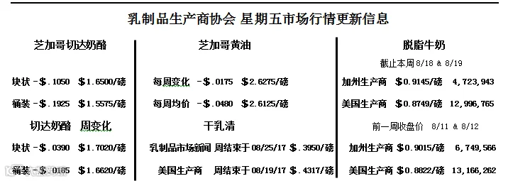 加州4a牛奶$16.60/100磅 加州4b牛奶$16.12/100磅