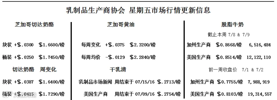 加州4a牛奶$14.01/100磅 加州4b牛奶$14.48/100磅