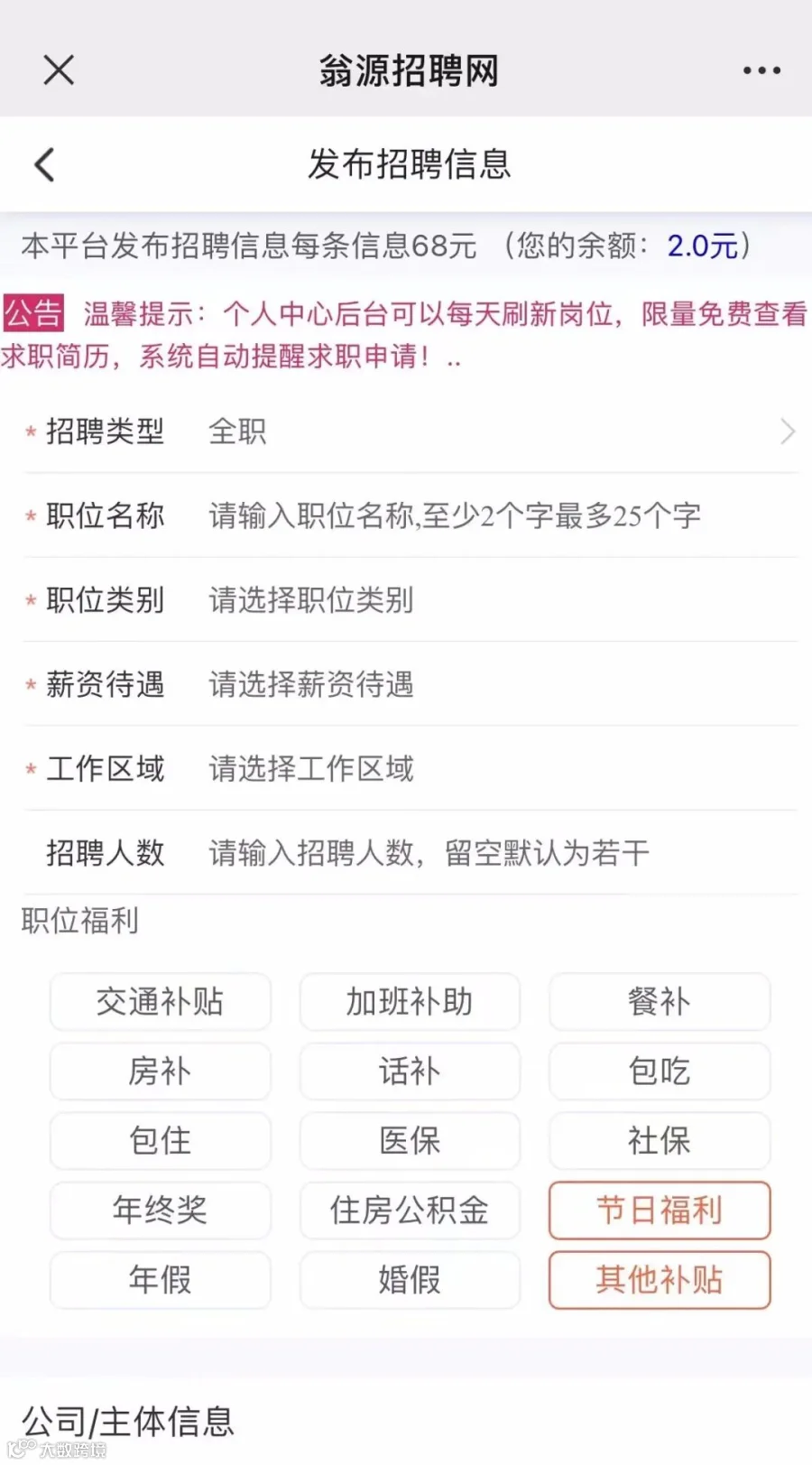单次发布招聘低至68元!