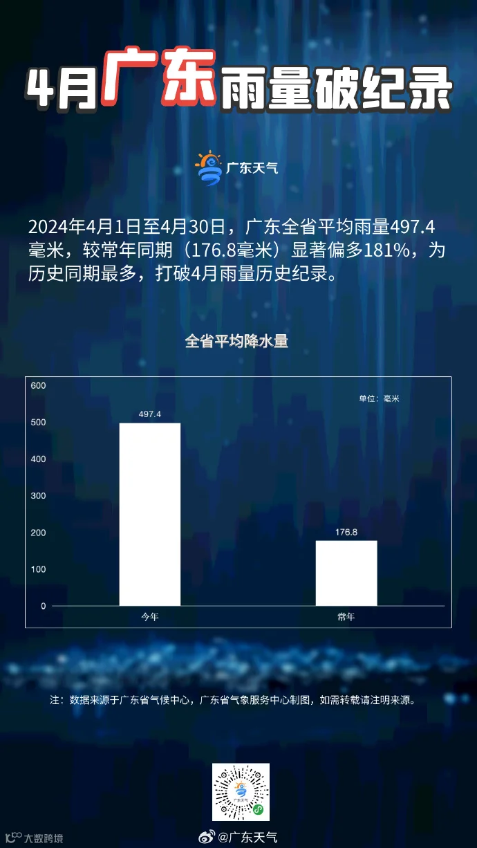广东全省平均雨量497.4毫米,