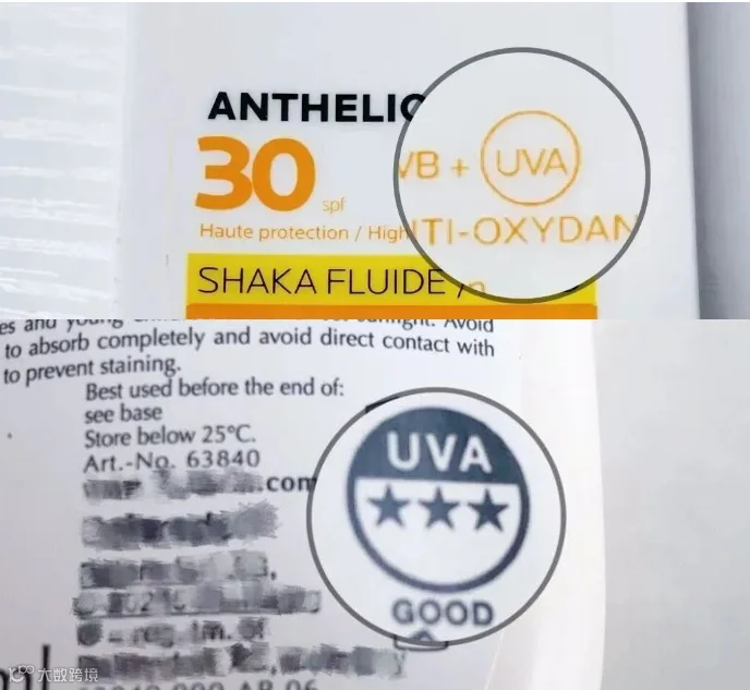UVA圆圈:如果产品包装上有一个UVA字母外面画着圆圈,代表其临界波长≥370纳米,且UVA防护力至少达到SPF值的三分之一。