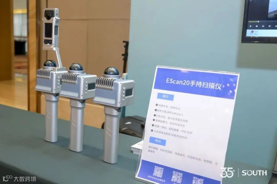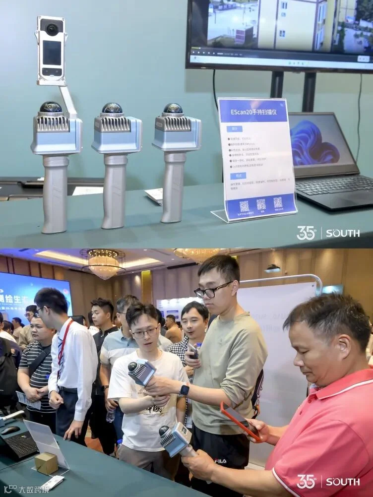 2、EScan20手持扫描仪全新发布,并进行现场展示及应用体验!可用于高支模检测、立体扫描、堆体计量、林业调查,满足各类杆件、土方、异框性框架测量领域。