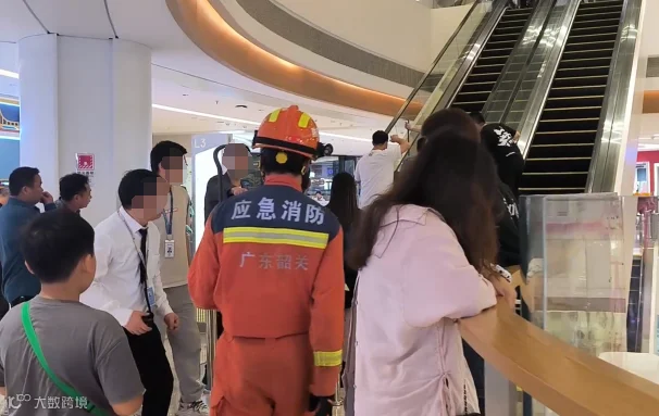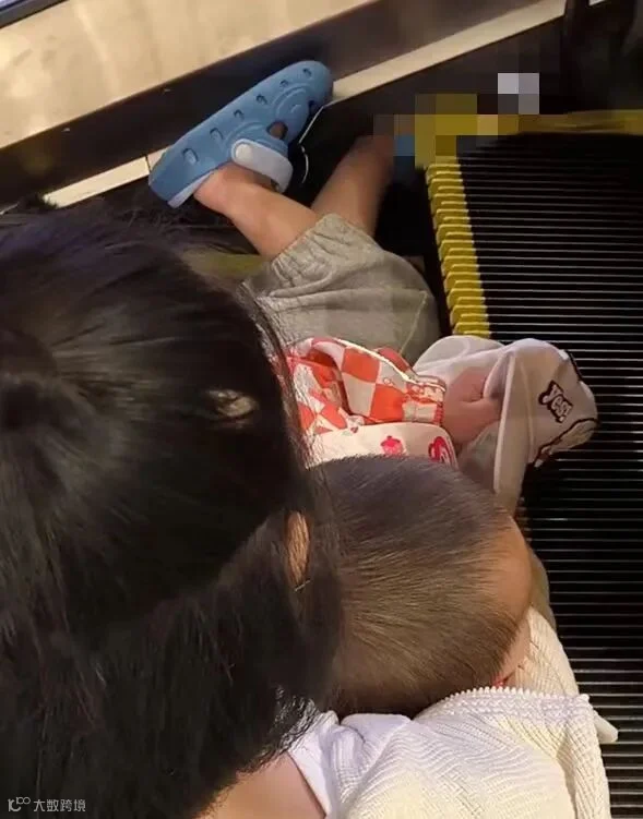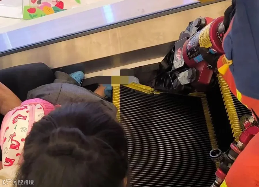 卡在3楼电动扶梯缝隙处,