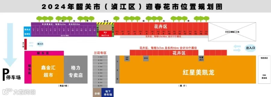 2024年韶关市(浈江区)兰花迎春花市位置规划图。