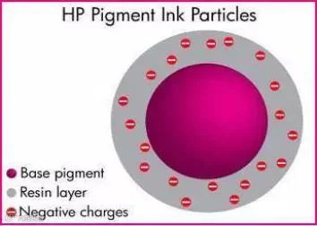 电荷封装技术大多应用于颜料墨盒上面,利用同性电荷排斥的原理,让颜料基和树脂外模带上负电荷,小分子之间相同电荷相互排斥便避免了长期不用墨水沉积的问题,为用户避免不必要的损失。