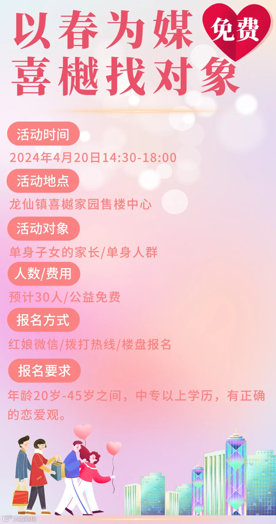 活动免费报名,旨在为单身青年男女与家长们提供一个公益的相亲平台。