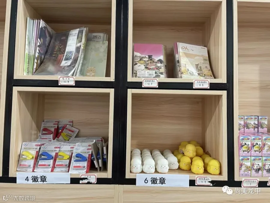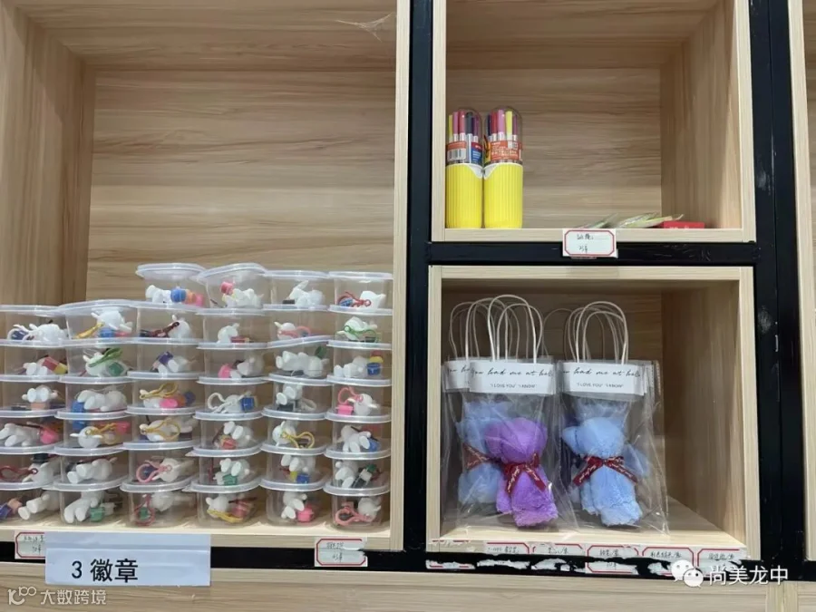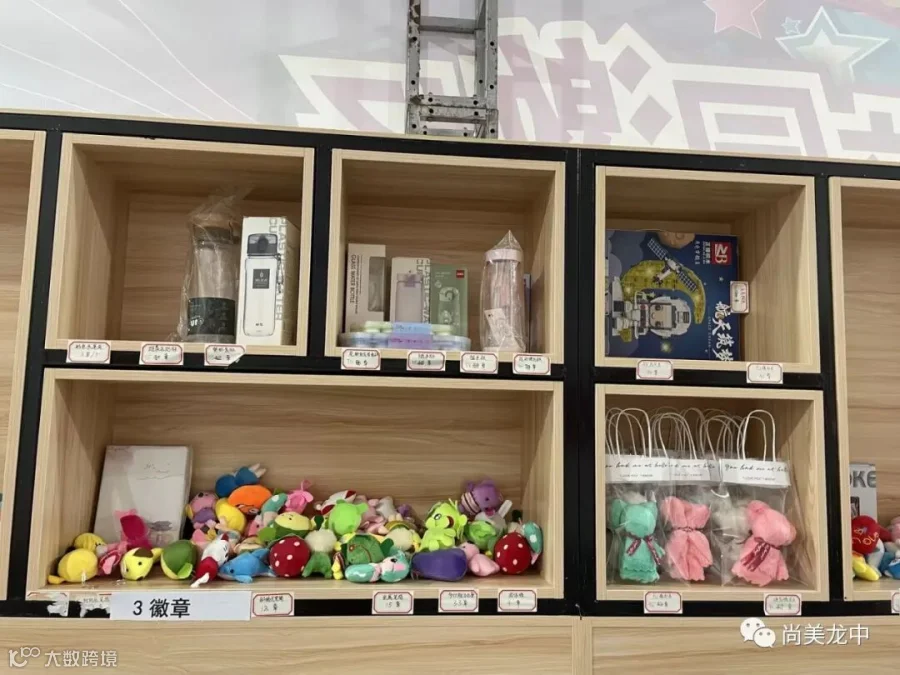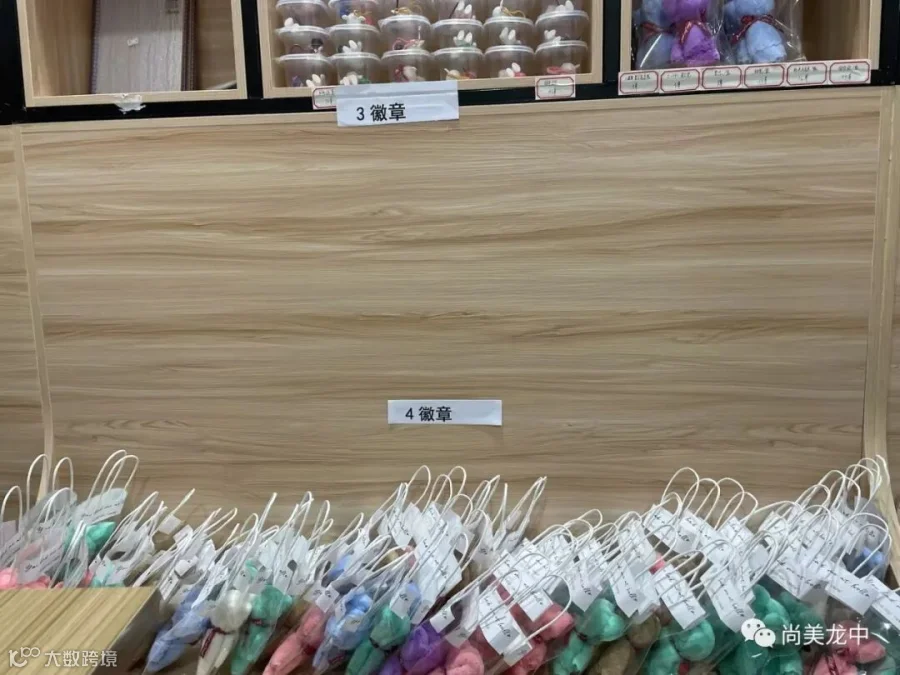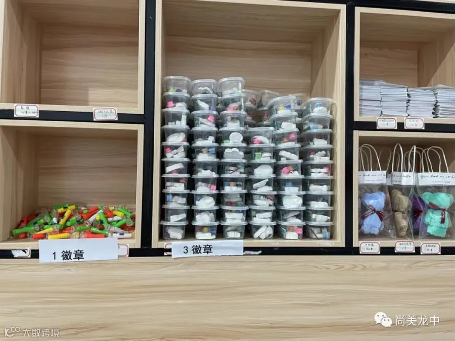 为了及时肯定表彰学生取得的点滴进步,让学生的成长可视化,我校将学生的德育量化成绩变成成长徽章,学生可以用成长徽章在校园“尚美超市”兑换心仪的物品。