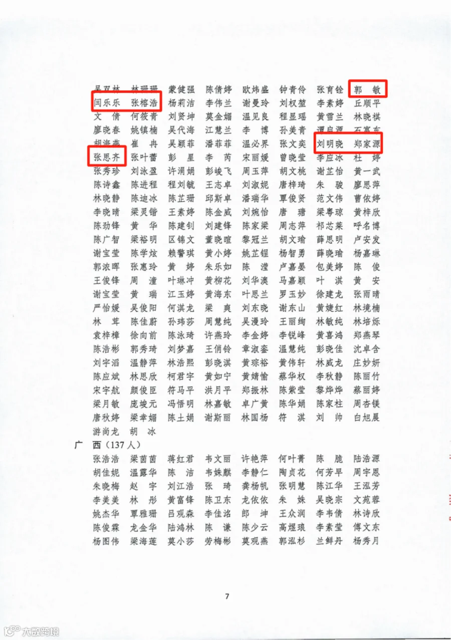 其中,翁源县郭敏、闫乐乐、张榕浩、刘明晓、