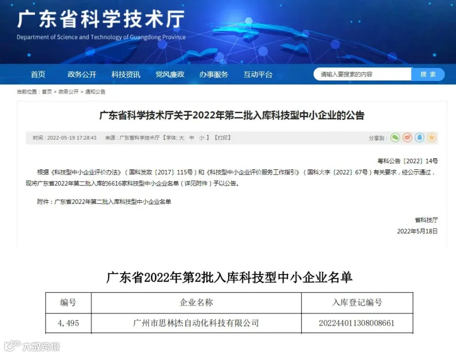 思林杰自成立以来,始终坚持持续的经营创新、技术创新与管理创新,注重自主创新研发实力。同时,为了持续提升企业技术创新能力及企业品牌形象,公司于2022年4月申报“科技型中小企业评价”,于2022年5月19日获批入库第二批科技型中小企业名单。自2018年以来,公司已连续5年获批入库科技型中小企业名单。