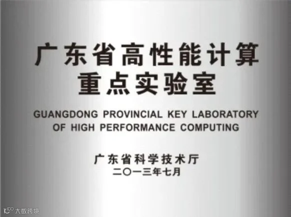 广东省高性能计算重点实验室于2008年8月由广东省科技技术厅批准成立,并于2013年7月1_0001.JPG通过验收。实验室依托单位为广东省科技基础条件平台中心,联合共建单位为广东工业大学、曙光信息产业有限公司。实验室配备了10万亿次计算集群、40TB光纤存储阵列、并行调度软件、并行软件开发工具(MPI)、开发课题等。
