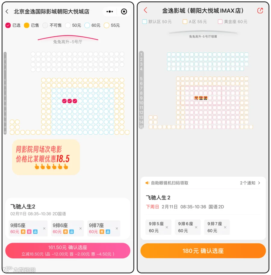 金逸影城(朝阳大悦城IMAX店)×3张180元电影票