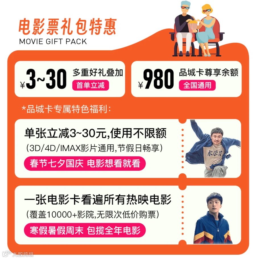 2.购票单张立减4~30元,叠加特惠+首单立减