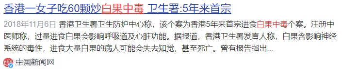 “香港女子吃60粒白果中毒”