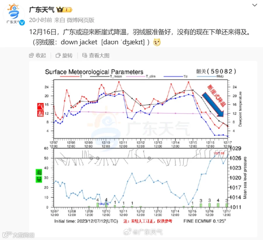 广东或迎断崖式降温。