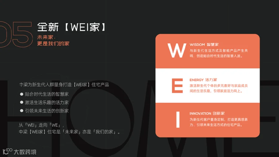 在4.0社区落地的同时,中梁还不断夯实WEI产品生态版图,WEI家户型是2021年创新研发的重磅成果。中梁为新生代人群量身打造贴合时代生活的智慧家(Wisdom)、激活生活乐趣的活力家(Energy)和引领未来生活的创新家(Innovation), 最终导出【WEI家】住宅系列“1+5+N”美好生活场景,WEI家户型的最新研发成果也将于近期发布。