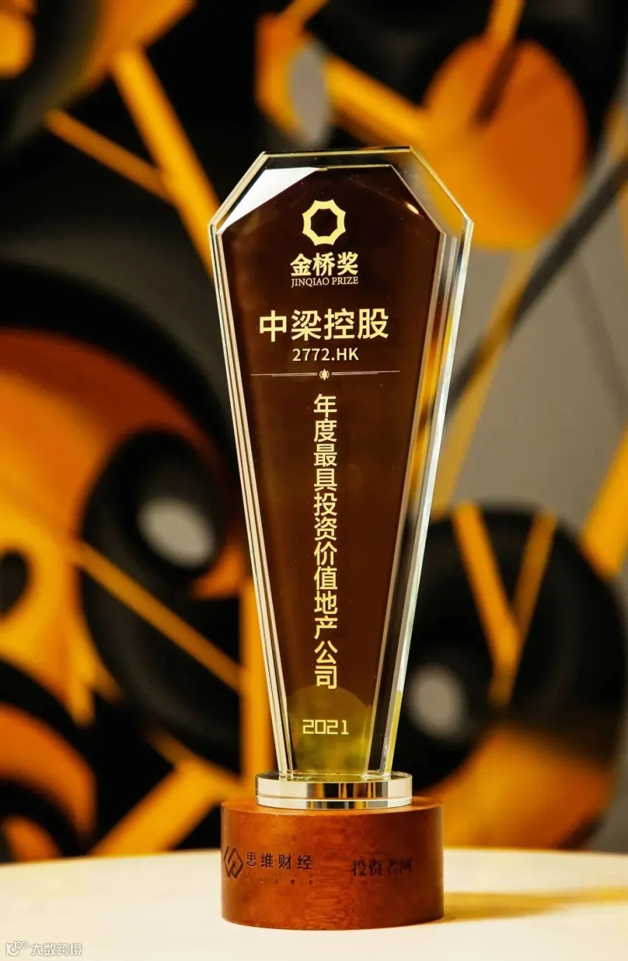 11月11日,由思维财经&投资者网主办的“2021年度思维财经投资者年会暨金桥奖颁奖盛典”在上海顺利举办。中梁荣获“金桥奖年度最具投资价值地产公司”奖。