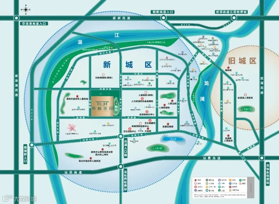 打开地图,设置以喜樾家园为原点,你会发现,直线距离约3公里范围内,即可抵达锦绣商圈、龙湖商圈、湖滨商圈,日后想要追赶休闲潮流,都在约一首歌的时间内即刻抵达;项目坐拥京港澳、汕昆、武深、韶新四大高速,未来出行已然迅捷。