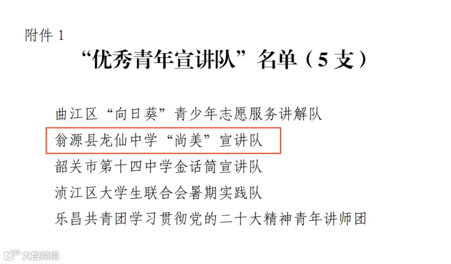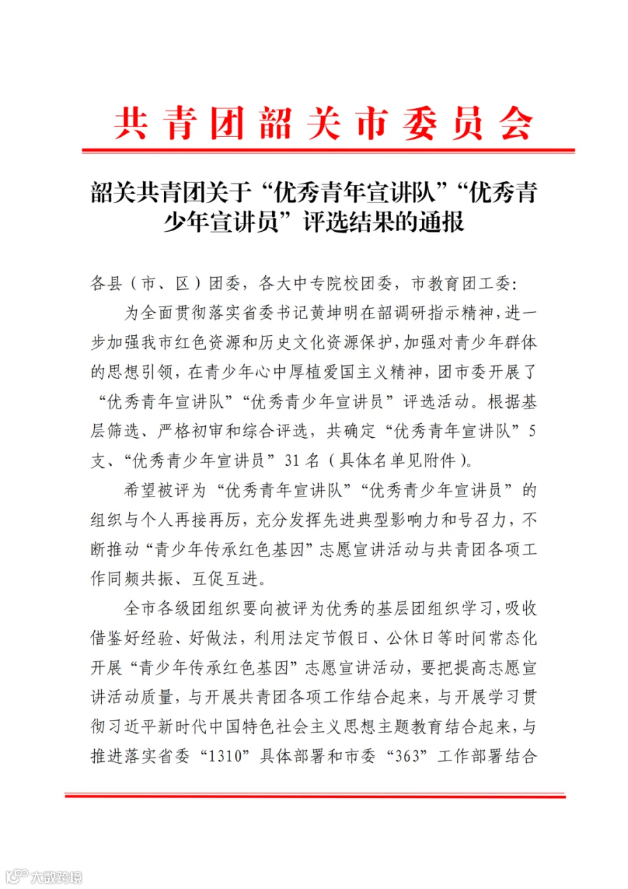 近日,团市委开展了“优秀青年宣讲队”和“优秀青少年宣讲员”评选活动。经评审,翁源县八名学生获评市级“优秀青少年宣讲员”,龙仙中学“尚美”宣讲队获评市级“优秀青年宣讲队”。