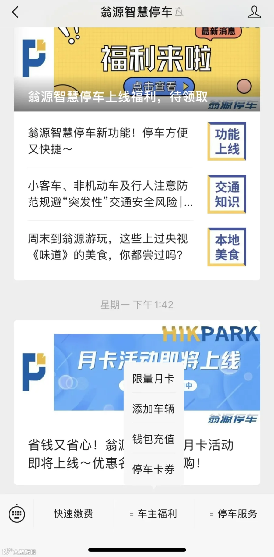 翁源智慧停车推出月卡服务