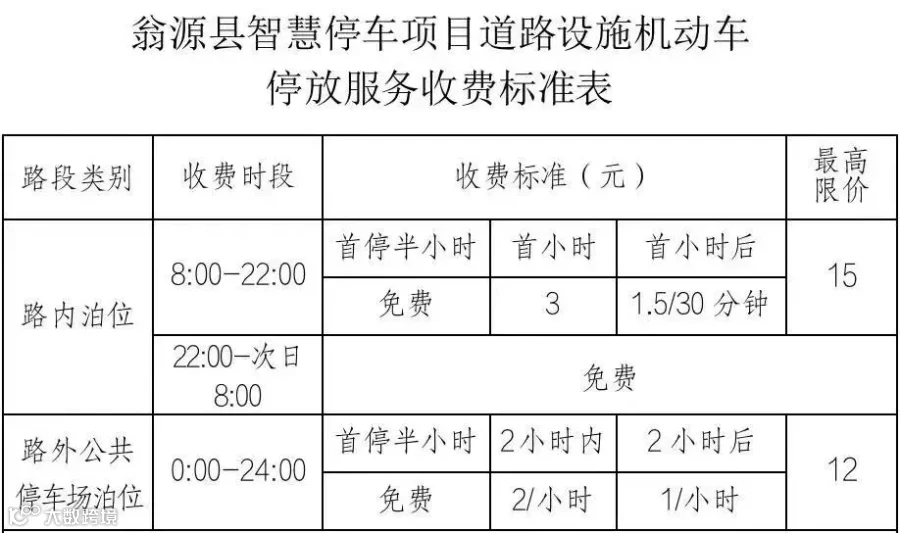 ►最高限价一天内(当日0:00-24:00),同一车次同一泊位最高收费限额如下:路内泊位一天内最高收费标准为15元,路外公共停车场泊位一天内最高收费标准为12元。