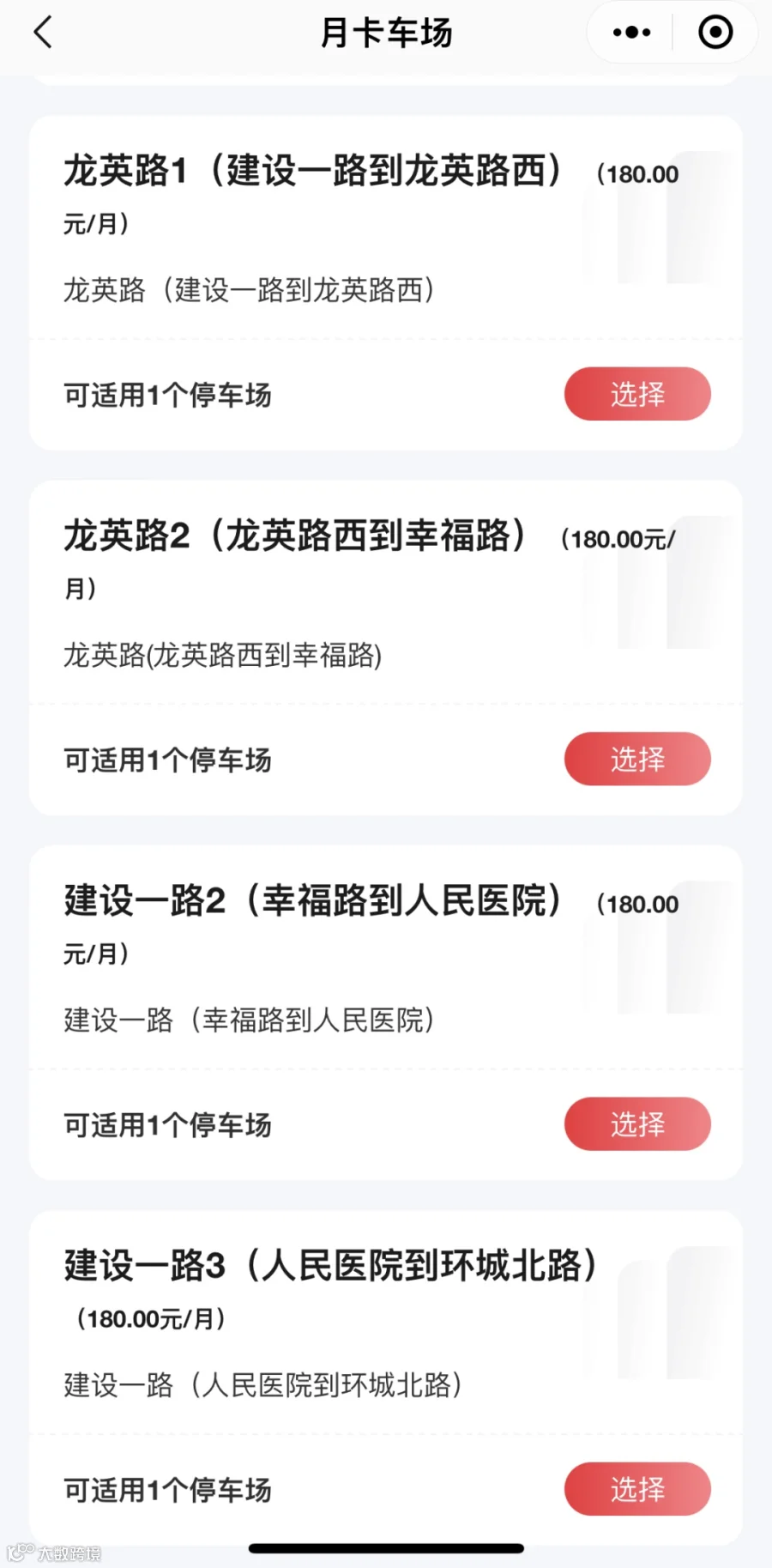 以上停车场任选1条,更多停车场规划中
