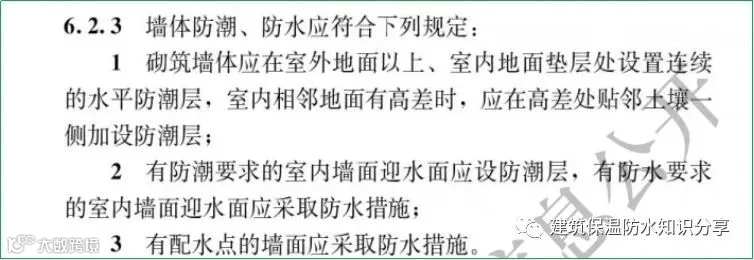2 有防潮要求的室内墙面迎水面应设防潮层,有防水要求的室内墙面迎水面应采取防水措施;