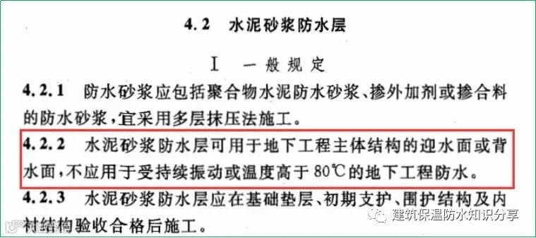 关于水泥砂浆防水层在地下工程的应用范围截图