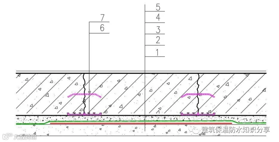 问题:写出图中 1项至7项代表的构造名称。(表示为1-基层垫层)