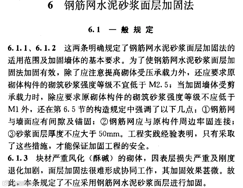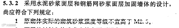 《加固规程》规定“原砌筑砂浆强度宜≤2.5”,其目标主要是强调砂浆面层加固效果在M2.5及以下,加固效果才明显,而且对于上世纪五、六十年代住宅建筑,实测砂浆强度小于M1.0很多,由规程表5.3.2-1也可以看出,此时采用砂浆面层加固效果很好。(主要针对砌体结构抗震加固,而不是构件加固)