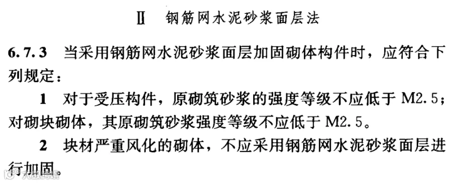 当采用钢筋水泥砂浆面层加固砌体构件时,《既有建筑鉴定及加固通用规范》(简称《加固通规》)中要求原砌筑砂浆强度不应低于M2.5,而《建筑抗震加固技术规程》(简称《加固规程》)中又要求原砌体实际的砌筑砂浆强度等级不宜高于M2.5,两本规范的要求是相反的,规程中应该怎么考虑呢?