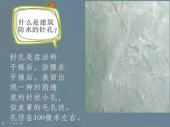 第二,防水材料施工时,涂刷不够充分,防水材料浮在基层表面,没有形成完全浸润,从而导致针孔产生。