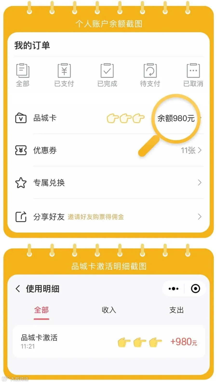 1.在线购买后自动激活980元余额卡