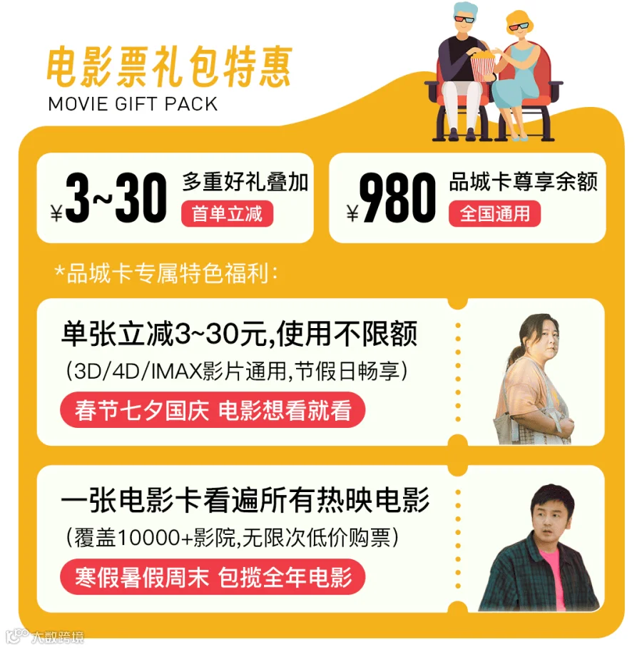 全国影院通用980元电影卡