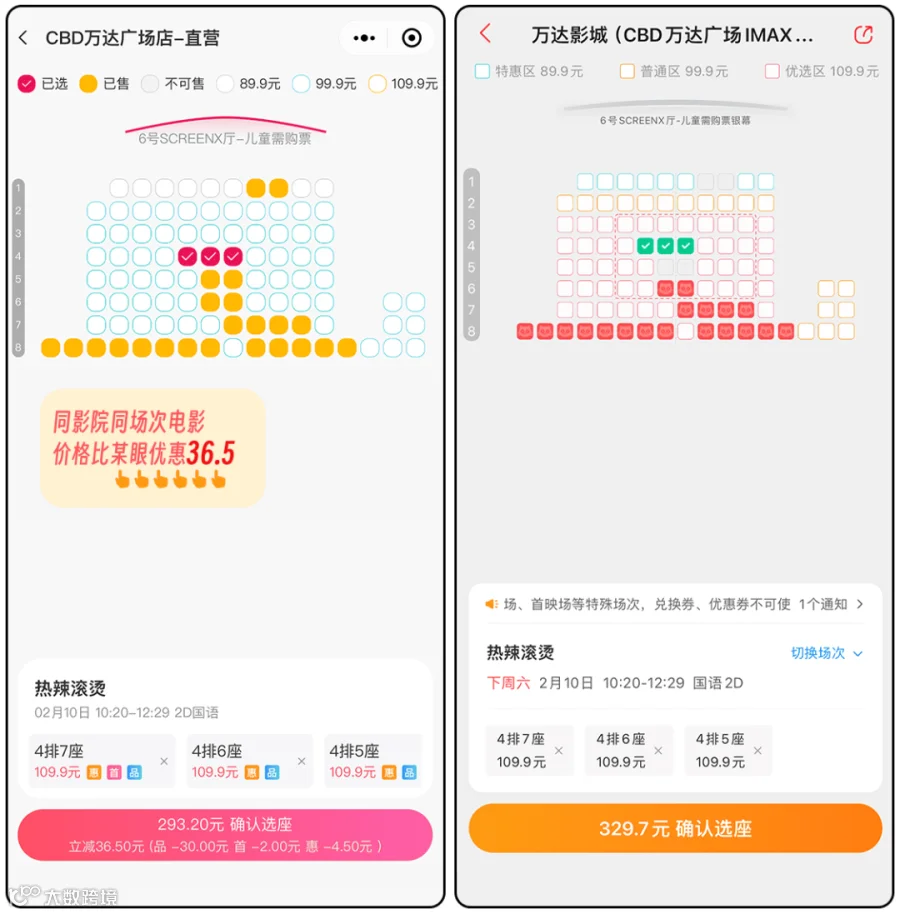 CBD万达广场店-直营×3张329.7元电影票